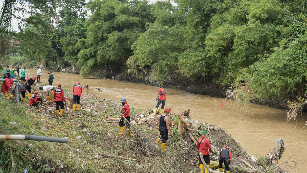 Roby Chairi menambahkan, peserta gotong royong membabat ilalang dan tanaman keras yang menyemak di lereng sungai.