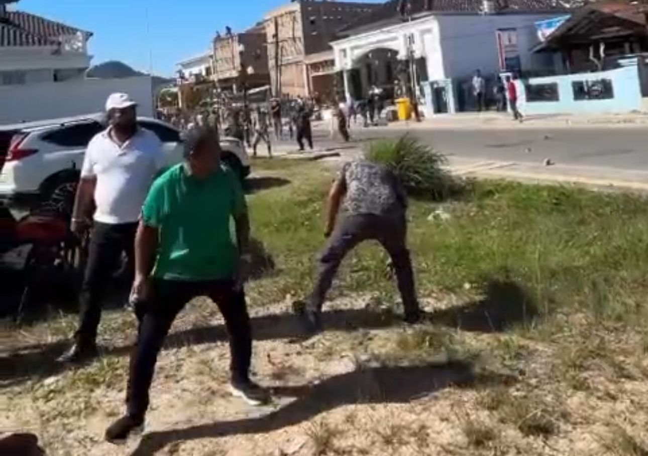 Anggota DPRD Sumut dari Fraksi Partai NasDsm terlihat terlibat bentrok dengan masa di Tapteng, Jumat (31/10/2025) malam. (tangkapanlayarvideo)