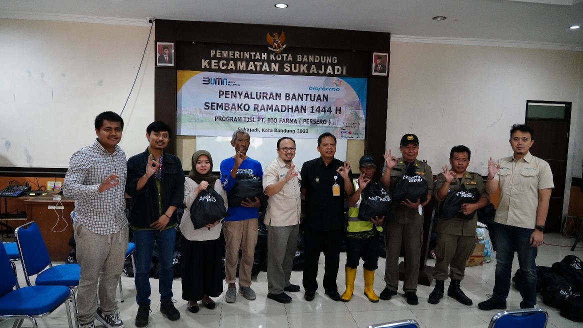 Bio Farma menyalurkan Bantuan Sembako Ramadan 1444 H sebanyak 2.000 paket sembako di wilayah Sukajadi dan Cisarua, Kamis (13/04/2023).
