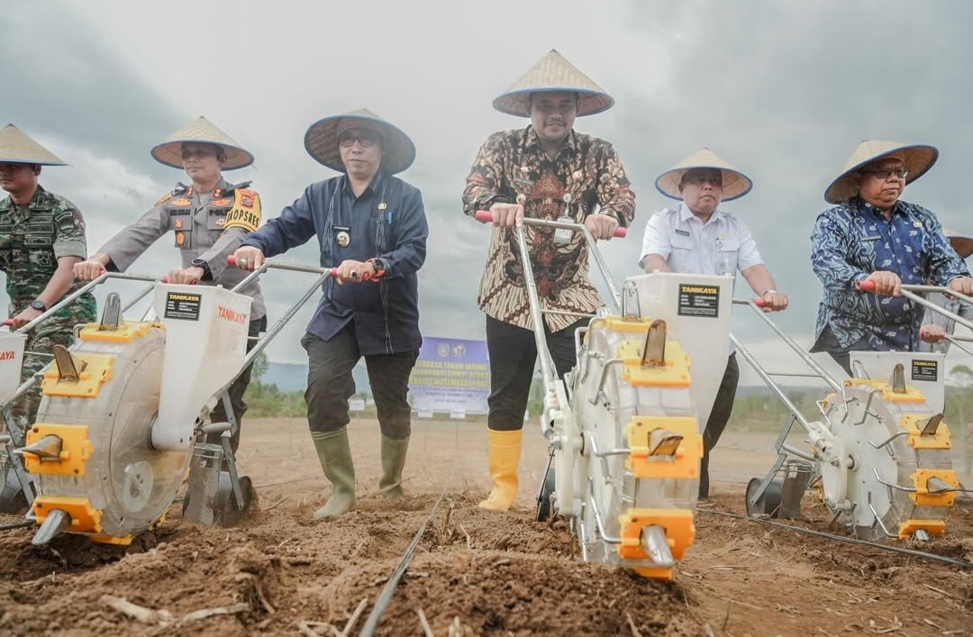 Usai berdialog dan berdiskusi dengan para petani jagung, Bobby Nasution bersama Bupati Taput, Kapolres, pimpinan perangkat daerah Sumut dan Taput, menanam jagung di areal lahan seluas 25 hektare.