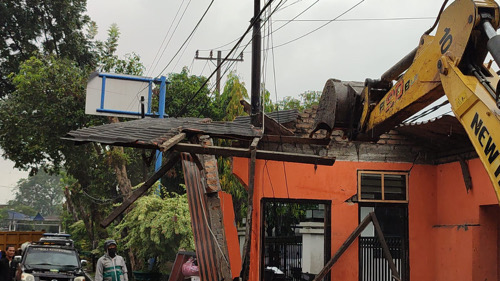 Sesampainya di lokasi, tim langsung bergegas membongkar bangunan. Agar memudahkan proses pembongkaran, Pemko Medan juga menurunkan satu unit alat berat. Sisa-sisa material pembongkaran kemudian dibersihkan oleh petugas.