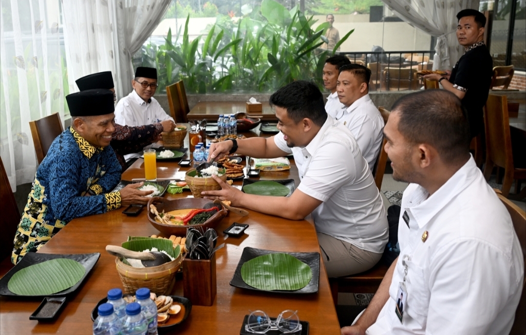 Bobby Nasution makan siang bersama Ketua PW Muhammadiyah Sumut Hasyimsyah Nasution, Rabu (22/10/2025). (istimewa)