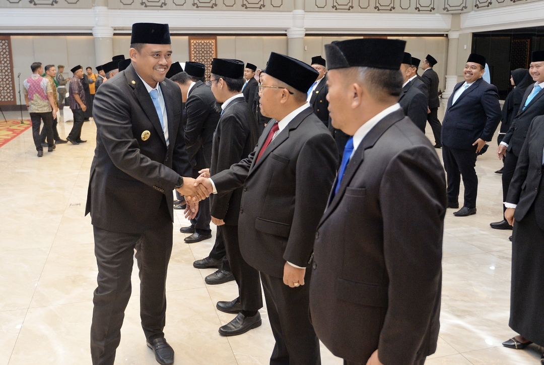 Gubernur Sumut Bobby Nasution melantik 60 pejabat eselon III dan IV Pemprov Sumut, Jumat (4/7/2025). (istimewa)