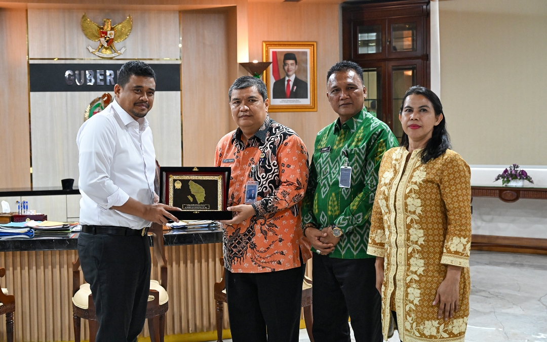 Gubernur Sumut Bobby Nasution menerima kunjungan Kakanwil Ditjen Imigrasi Sumut Teodorus Simarmata dan Kakawil Ditjen Pemasyarakatan Sumut Yudi Suseno, Jumat (9/5/2025). (istimewa)