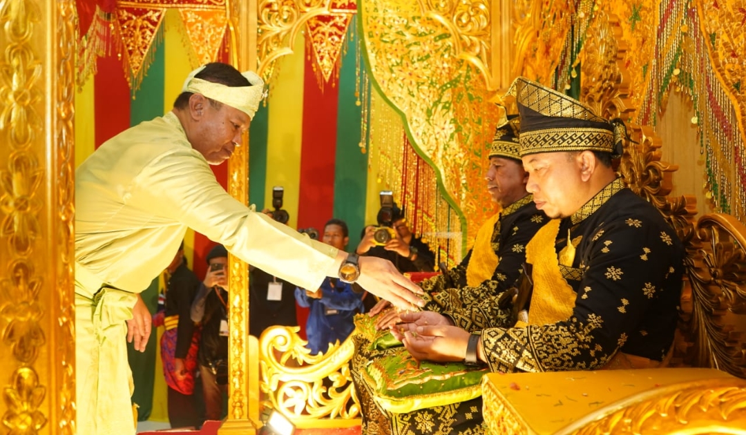 Pj Bupati Bara Nizhamul hadiri penganugerahan gelar adat Melayu kepada Bupati Siak Alfredi dan Wakil Bupati Husni Merza di Gedung Lembaga Adat Melayu (LAM) Siak, Minggu (9/6/2024). (istimewa)