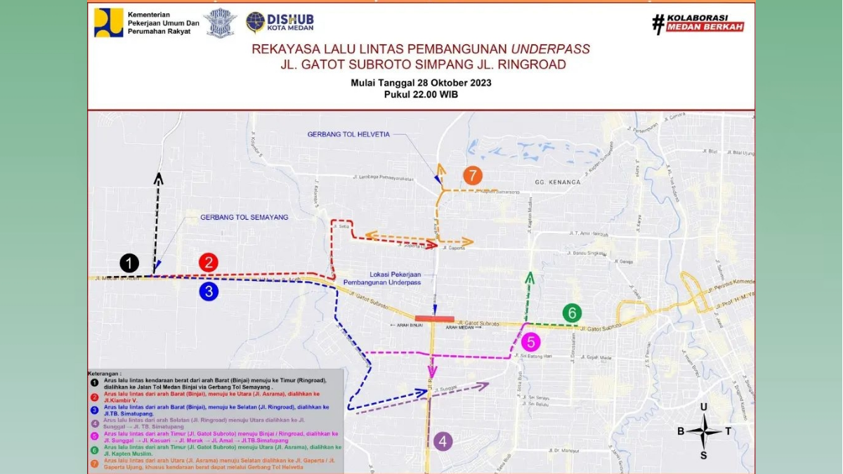 Peta rekayasa lalu lintas selama pembangunan Underpass Jalan Gatot Subroto Simpang Jalan Gagak Hitam/Ringroad Medan. (dok ig @dishub_medan)