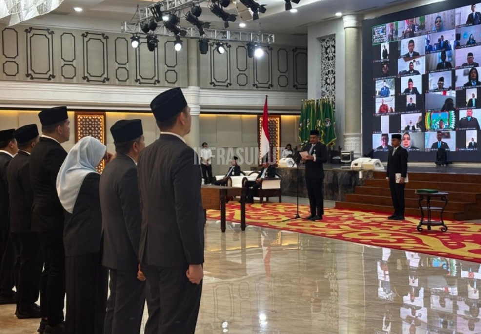 InfraSumut.com – Medan. Sebanyak 380 pejabat eselon diambil sumpahnya dan dilantik Gubernur Sumatera Utara, Bobby Nasution, di Aula Raja Inal Siregar, Kantor Gubernur Sumut, Jalan Pangeran Diponegoro, Kota Medan, Senin (9/3/2026).