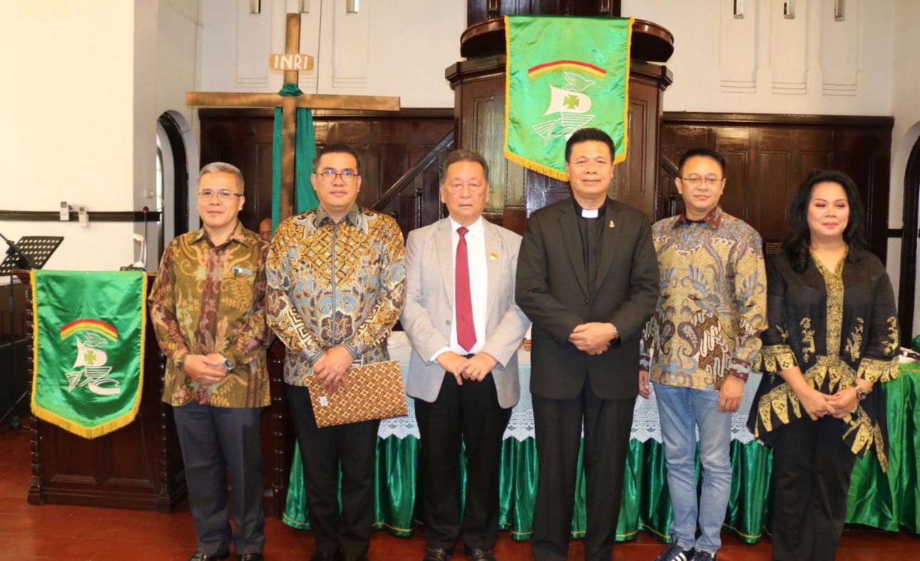 Dr Naslindo Sirait bersama panitia lainnya dilantik sebagai Panitia Natal Oikumene Sumut 2024, Jumat (7/6/2024). (istimewa)