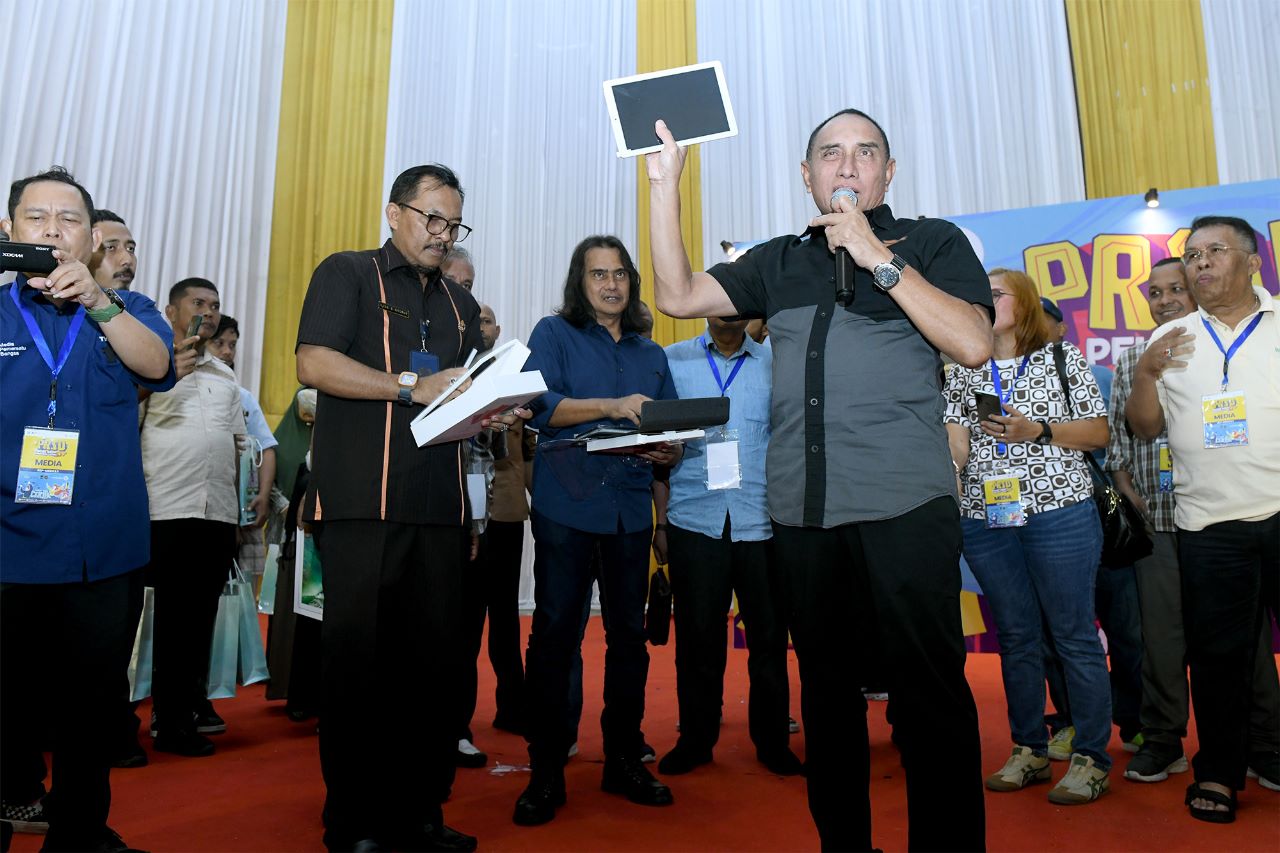 “Kalau kalian buka nanti, muncul gambar gubernur. Iya iyalah, orang yang memberi gubernur, bukan orang lain,” kata Gubernur Edy Rahmayadi dengan nada bercanda.