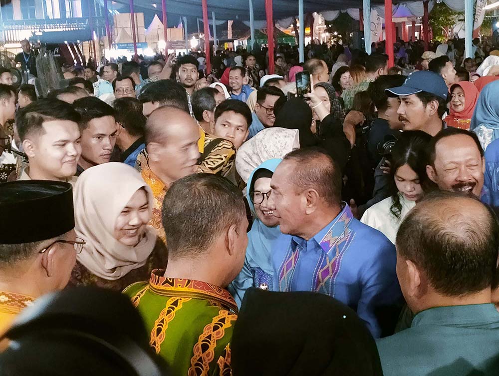 Gubernur Sumut, Edy Rahmayadi, disalamai bupati/wali kota pada pembukaan PRSU ke-49, Jumat (16/06/2023) malam. (bps)