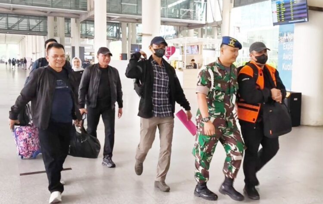 Saat itu ia berjalan di dalam bandara menuju kendaraan yang akan membawanya ke Pengadilan Negeri (PN) Medan.