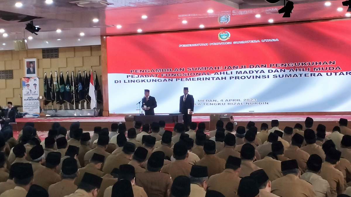 InfraSumut.com – Medan. Gubernur Sumatera Utara, Edy Rahmayadi, memberi arahan pada pengambilan sumpah janji dan pengukuhan ratusan pejabat fungsional ahli madya dan ahli muda di lingkungan Pemprov Sumut, Selasa (04/04/2023) sore.