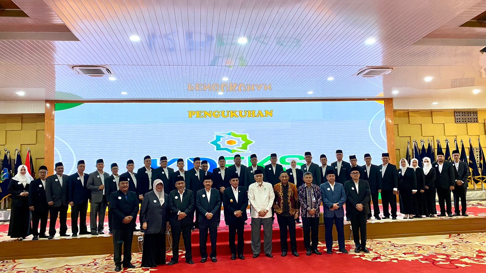 Gubernur Edy Rahmayadi dan Komite Daerah Ekonomi dan Keuangan Syariah (KDEKS) Provinsi Sumut foto bersama usai pengukuhan, Senin (10/04/2023). (istimewa)