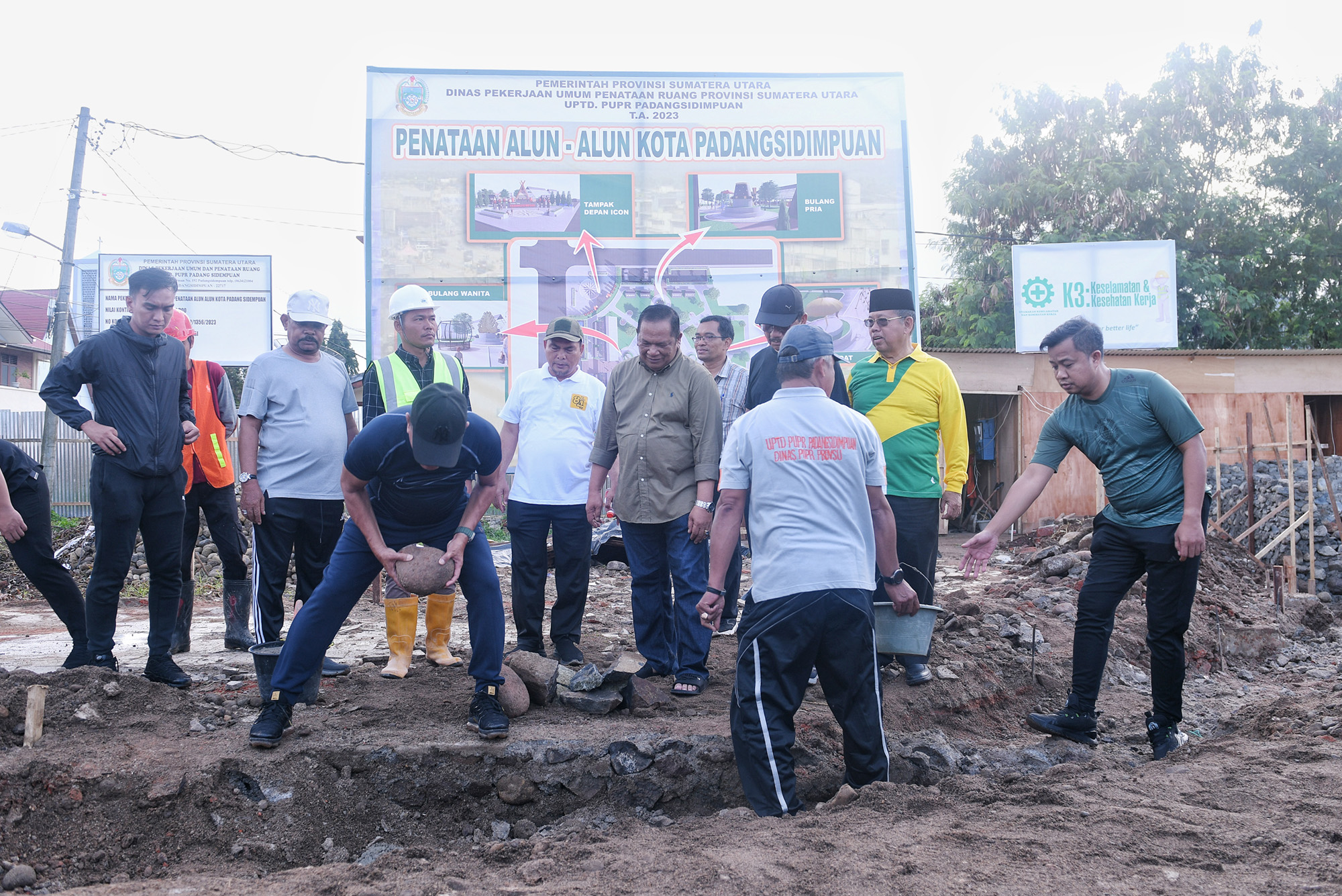 Gubernur Sumut Edy Rahmayadi meletakkan batu pertama pembangunan Alun-alun Kota Padang Sidimpuan, Rabu (30/08/2023). (istimewa)