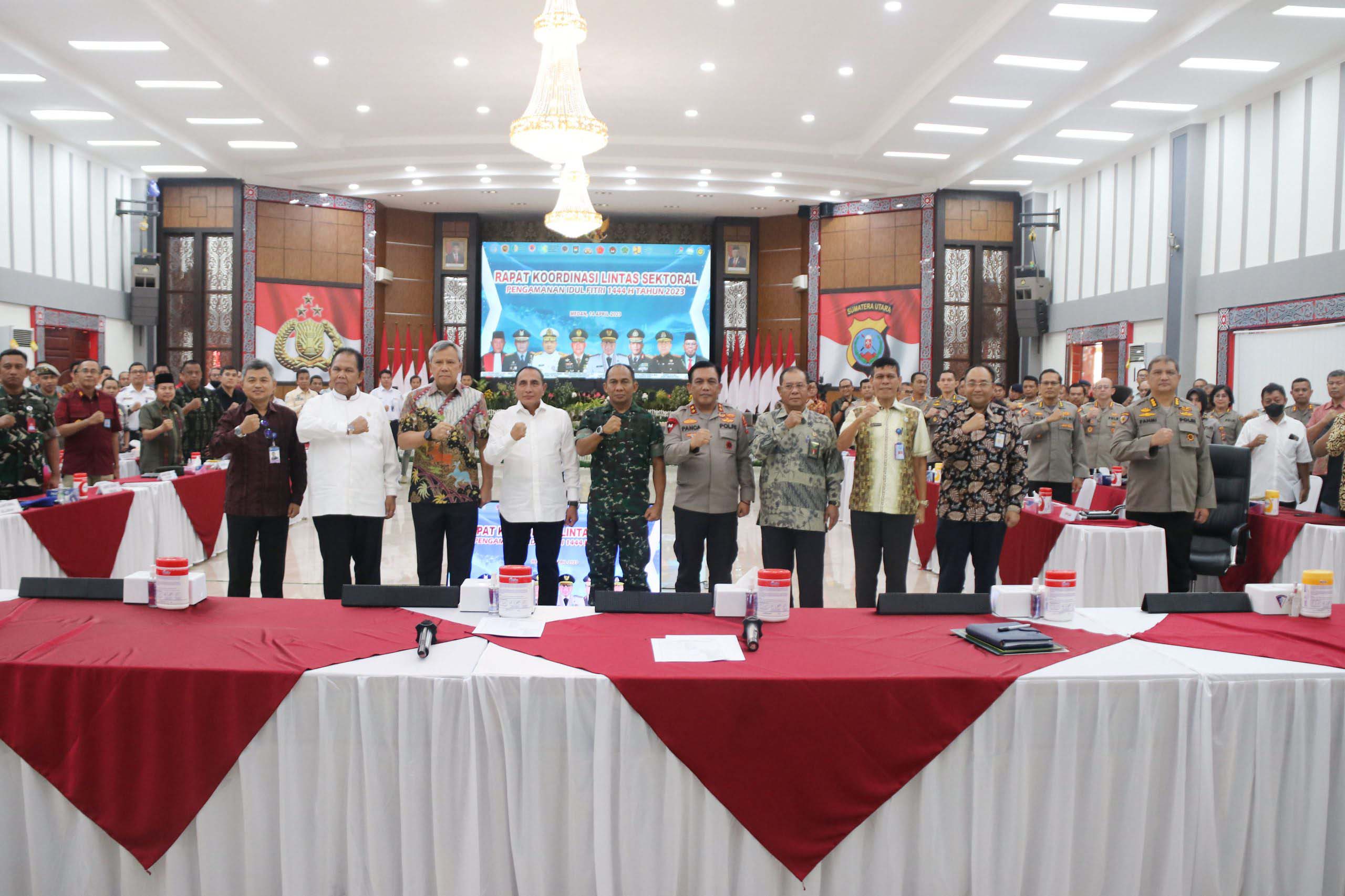 Gubernur Sumut Edy Rahmayadi, Kapolda Sumut Irjen Pol Panca Putra Simanjuntak pada Rakor Lintas Sektoral Pengamanan Idul Fitri 1444 H/Tahun 2023 bersama Forkpimda Sumut di Mapolda Sumut, Jumat (14/04/2023). (istimewa)