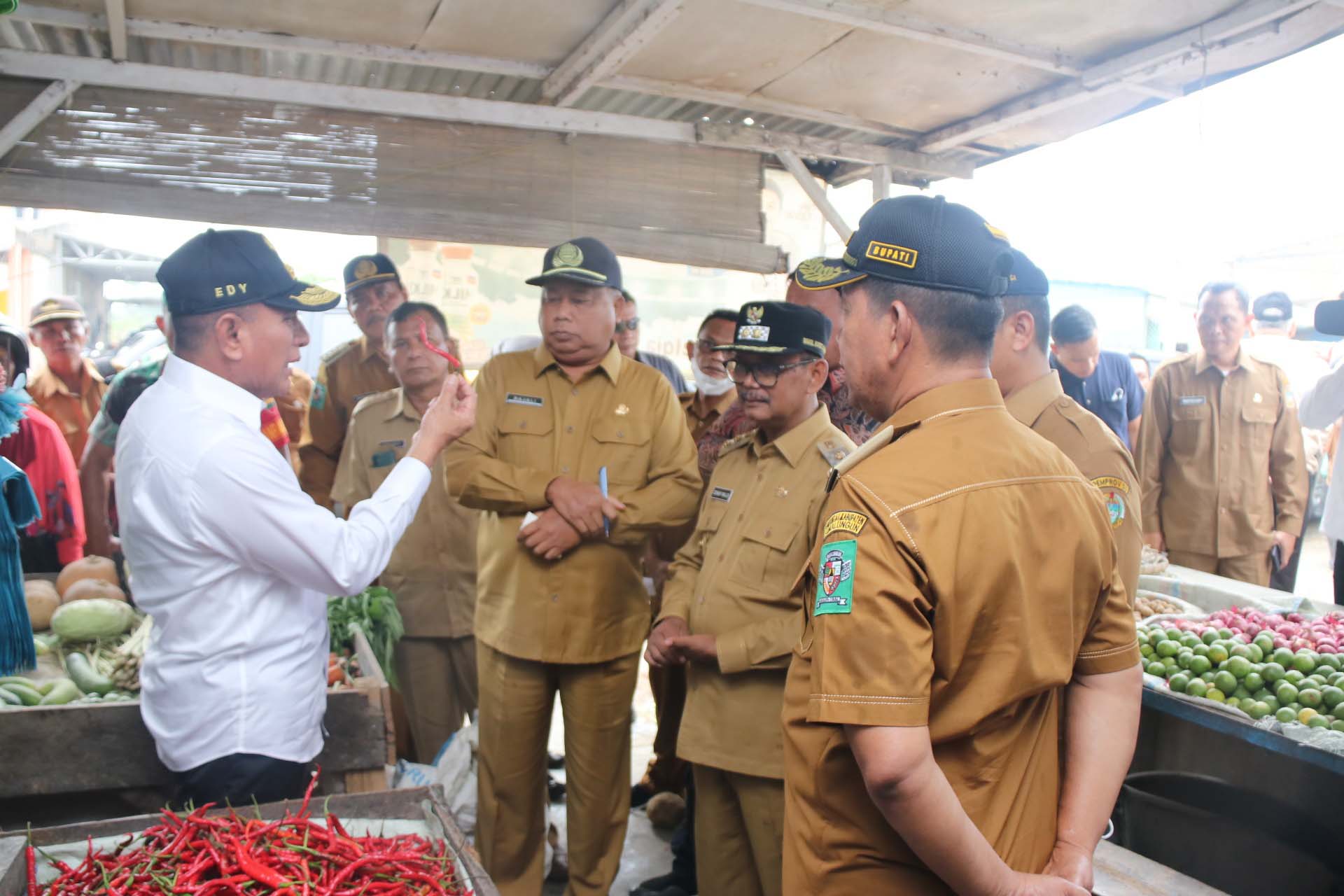 Gubernur Edy Rahmayadi pada peninjauan itu, sempat berdialog dengan pedagang tentang hasil dagangan dan kondisi komoditas pertanian.