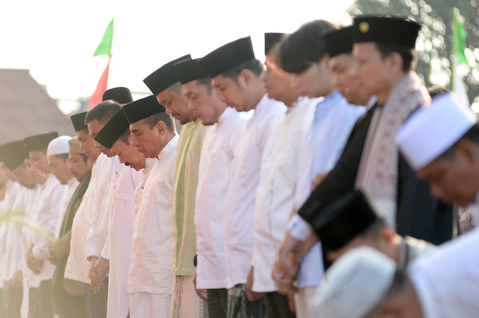 Gubernur Sumut, Edy Rahmayadi, Wali Kota Medan, Bobby Nasution, salat Idul Adha 1444 H di Lapangan Bola Mabar, Medan Deli, Kamis (29/06/2023). (istimewa)