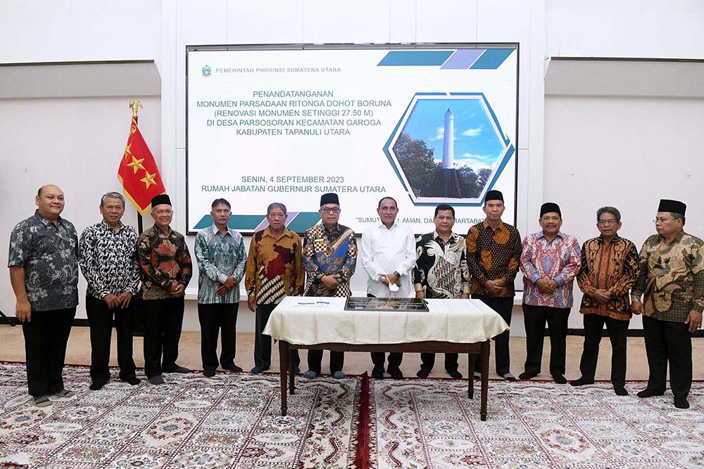 InfraSumut.com – Medan. Gubernur Sumatera Utara, Edy Rahmayadi, menandatangani Prasasti Renovasi Monumen Parsadaan Ritonga Dohot Boruna, yang berada di Desa Parsorsoran, Kecamatan Garoga, Tapanuli Utara.