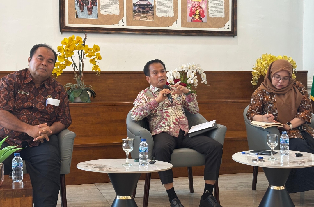 Kepala Bapenda Sumut Ardan Noor memberi keterangan kepada wartawan, Kamis (2/10/2025). (dok/infrasumut)