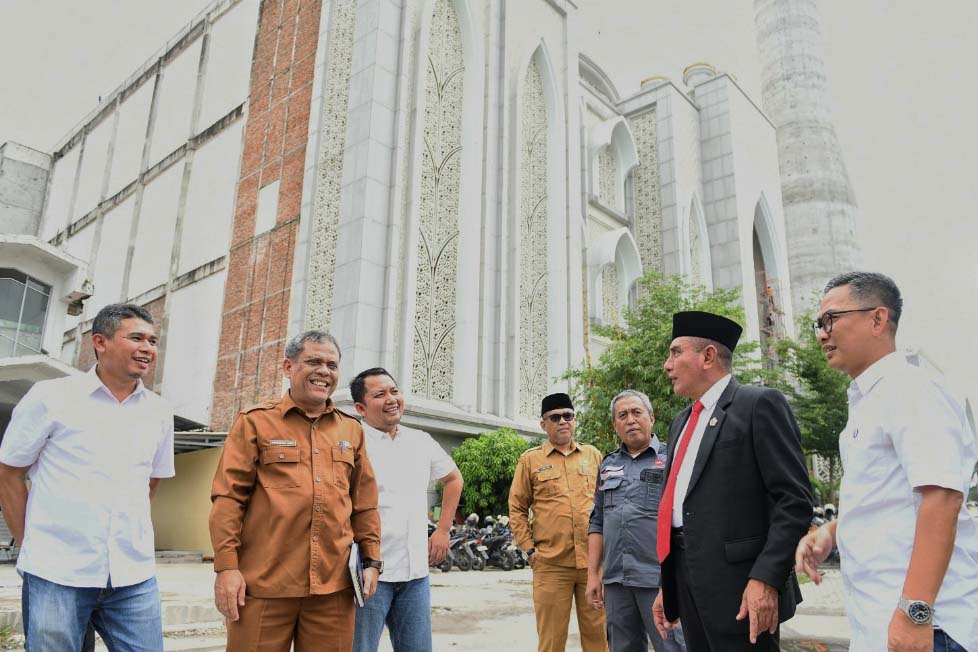 Gubernur Sumut Edy Rahmayadi saat meninjau proses pembangunan Masjid Agung Sumut, Jalan Diponegoro Medan, beberapa waktu lalu. (istimewa)