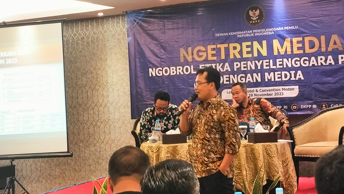 Hal tersebut diungkapkan Tenaga Ahli DKPP RI, Mohammad Saihu, dalam diskusi Ngetren Media ‘Ngobrol Etika Penyelenggara Pemilu dengan Media’, di Hotel Lee Polonia, Jalan Jenderal Sudirman Medan, Rabu (29/11/2023).
