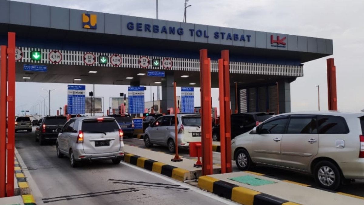 Kendaraan memasuki Gerbang Tol Ruas Binjai-Langsa Seksi 1 (Binjai-Stabat) pada arus balik Lebaran 2023 beberapa waktu lalu. (dok hutama karya)