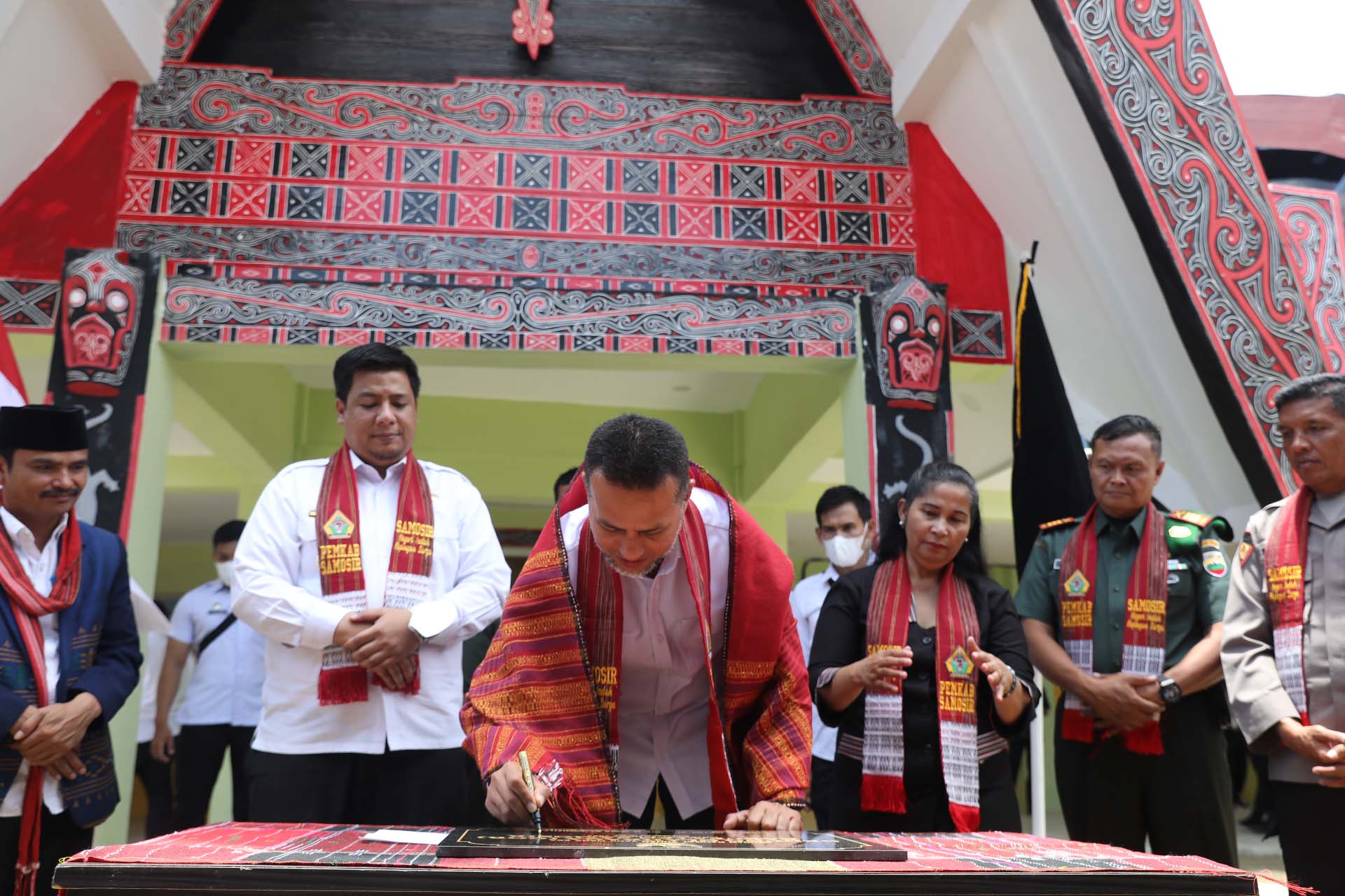 Wakil Gubernur Sumut, Musa Rajekshah, didampingi Bupati Vandiko Samosir, meresmikan Gedung Olahraga (GOR) Samosir di Lumban Sihombing, Dusun II, Desa Hutanamora, Kecamatan Pangururan, Rabu (29/03/2023). (istimewa)