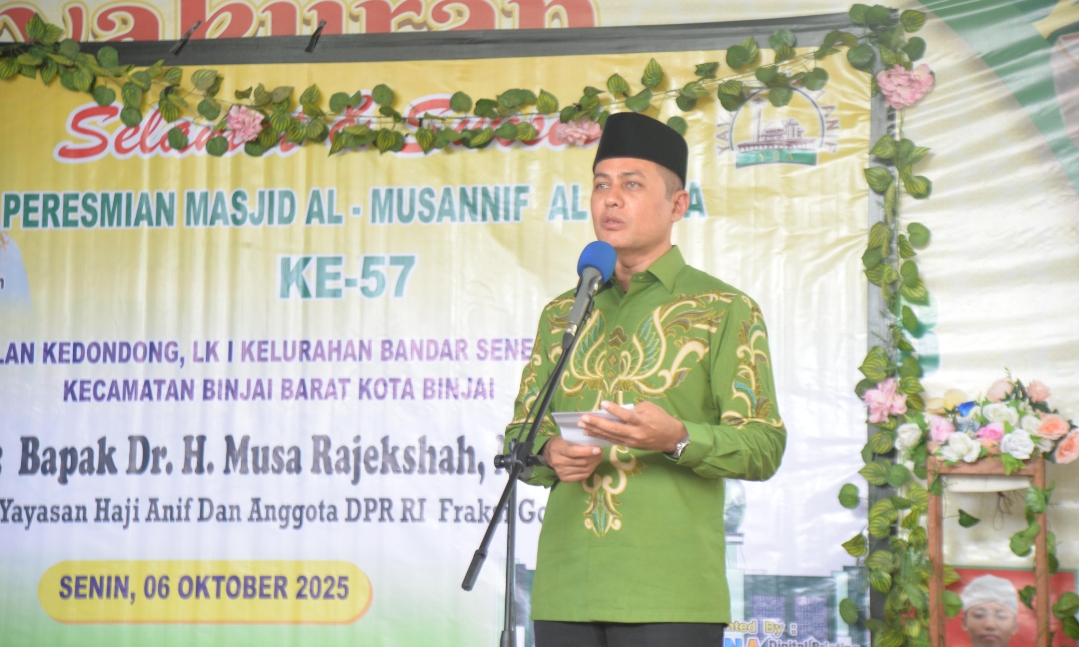 InfraSumut.com – Binjai. Ketua Yayasan Haji Anif (YHA), Musa Rajekshah, meresmikan Masjid Al Musannif Al Huda di Jalan Kedondong, Kelurahan Bandar Senembah, Kecamatan Binjai Barat, Kota Binjai, Senin (6/10/2025).