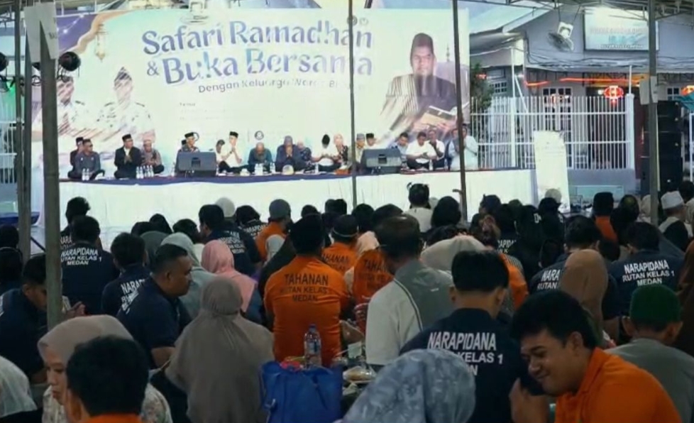 InfraSumut.com – Medan. Safari Ramadan di Rumah Tahanan Negara Kelas I Medan berlangsung penuh khidmat dan kebersamaan. Suasana Ramadan 1447 H terasa indah. Kegiatan yang dirangkaikan dengan buka puasa bersama ini menghadirkan momen istimewa bagi 372 warga binaan yang berkesempatan berbuka puasa bersama keluarga mereka.