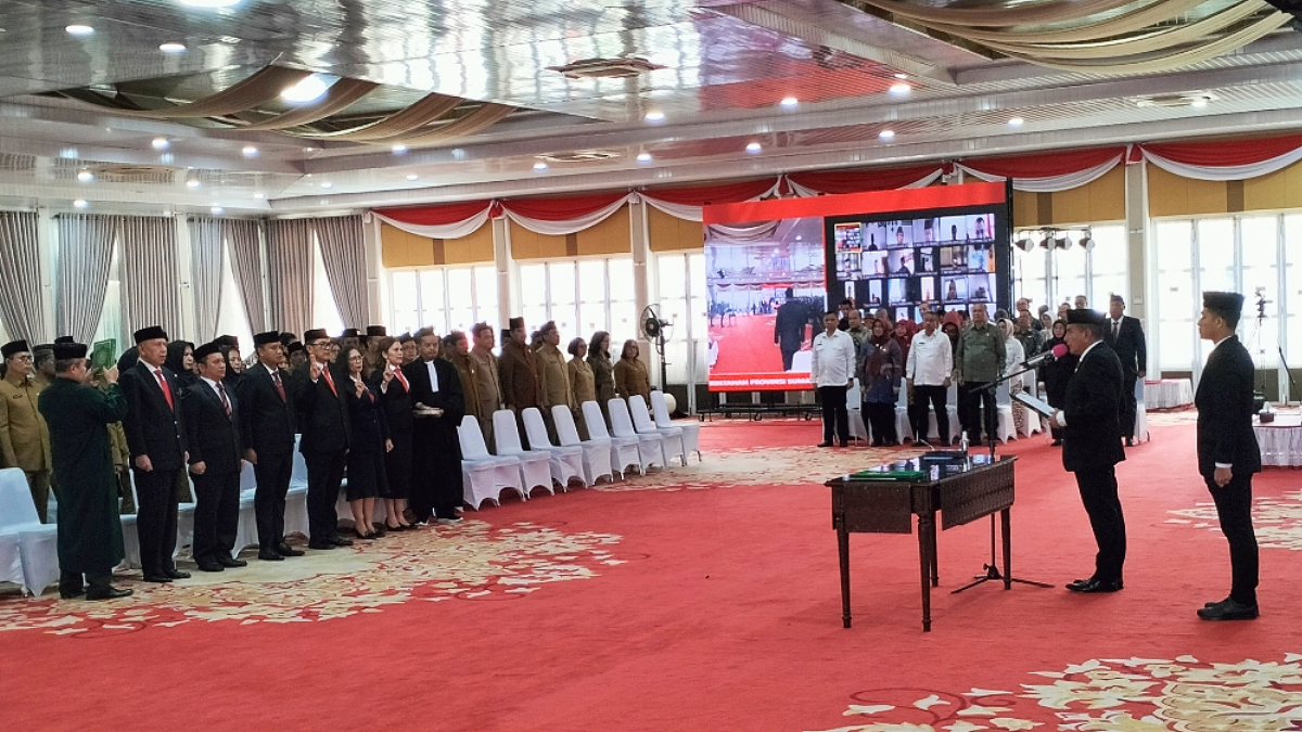 Pelantikan dihadiri Sekdaprov Sumut, Arief S Trinugroho, Kepala Badan Kepegawaian Sumut, Safruddin, dan sejumlah pimpinan OPD, di Aula Tengku Rizal Nurdin, Rumah Dinas Gubernur, Jalan Jenderal Sudirman Medan, Jumat (01/09/2023).