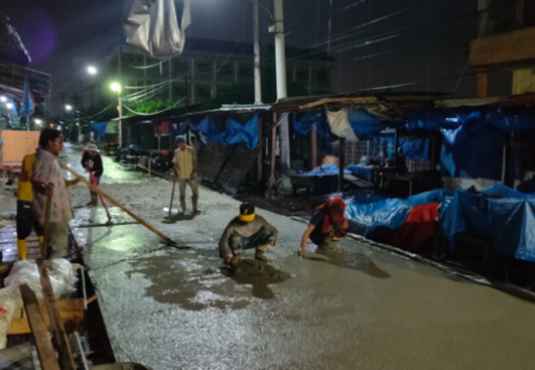 Pembetonan yang dikerjakan sepanjang 312 meter dengan lebar 3,6 meter tersebut diharapkan dapat memberikan kenyamanan bagi masyarakat khususnya para pedagang yang berjualan dilokasi tersebut.