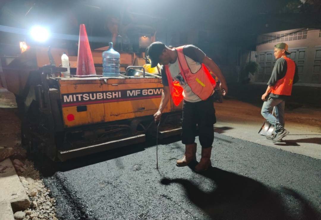Pekerja memperlebar dan mengaspal Jalan Tiba II Medan Denai, Minggu (25/06/2023) malam. (istimewa)