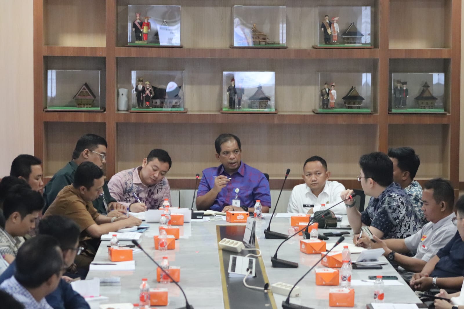 Kadis Perindag ESDM Sumut Dedi Jaminsyah Putra Harahap memimpin rapat koordinasi distribusi minyakita di Kantor Gubernur Sumut, Selasa (28/4/2026). (dok/infrasumut)