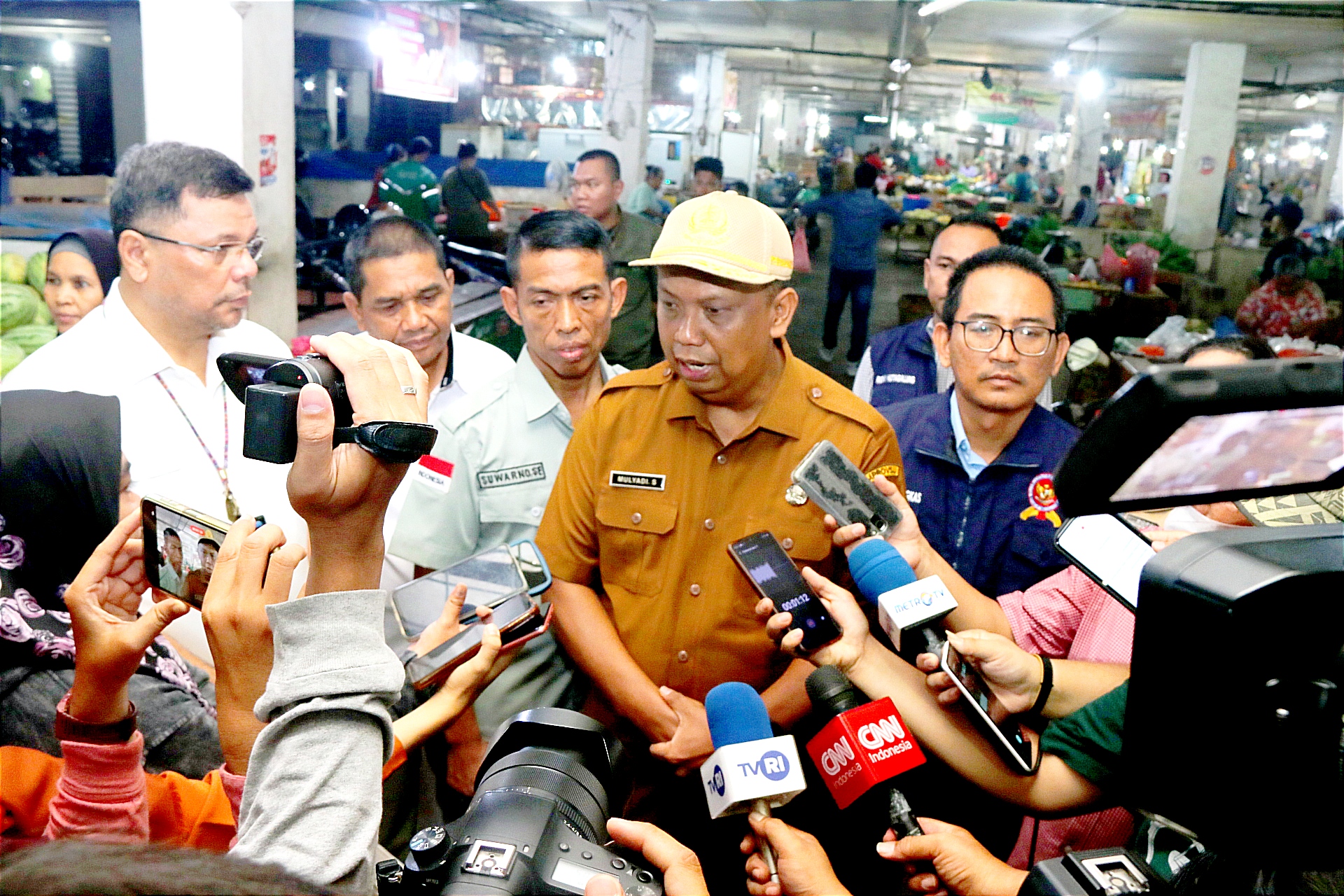 Kadis Perindag ESDM Sumut Mulyadi Simatupang, memberi keterangan usai meninjau ketersediaan bahan pokok di Pasar Petisah Medan, Selasa (2/4/2024). (istimewa)
