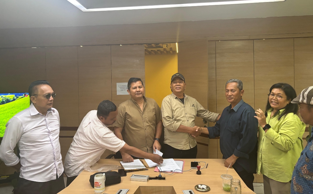 Ia menyerahkan berkas pendaftaran kepada Panitia Pemilihan Ketua FWP, diterima Wakil Ketua Ridin, Sekretaris Benny Pasaribu dan Wakil Sekretaris Ucok Iswandi.