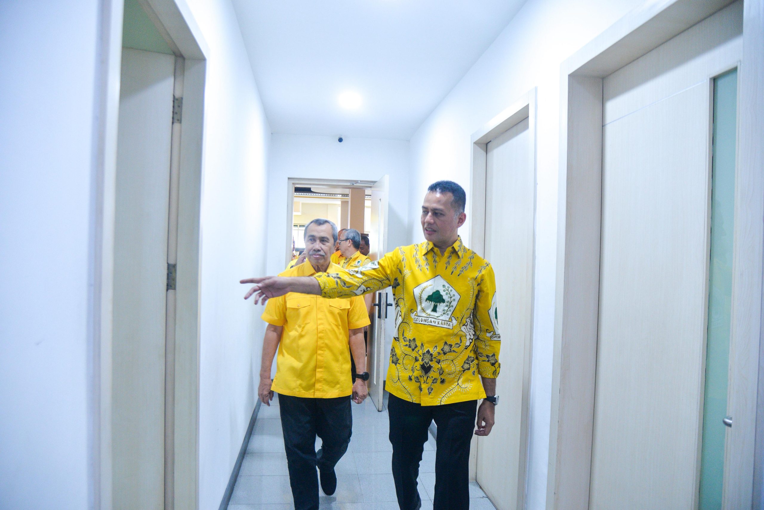 Ketua DPD Golkar Sumut Musa Rajekshah menerima kunjungan Ketua DPD Golkar Riau Syamsuar, Jumat (29/8/2025). (istimewa)