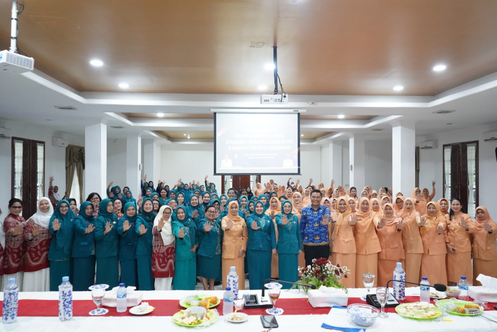 Ketua TP PKK Kecamatan Labuhan Deli dan Ketua Pembina Posyandu Kecamatan se-Kabupaten Deli Serdang usai dilantik Ketua TP PKK Deli Serdang Ny Jelita Asri Ludin Tambunan, Jumat (17/10/2025). (dok/kominfodeliserdang)