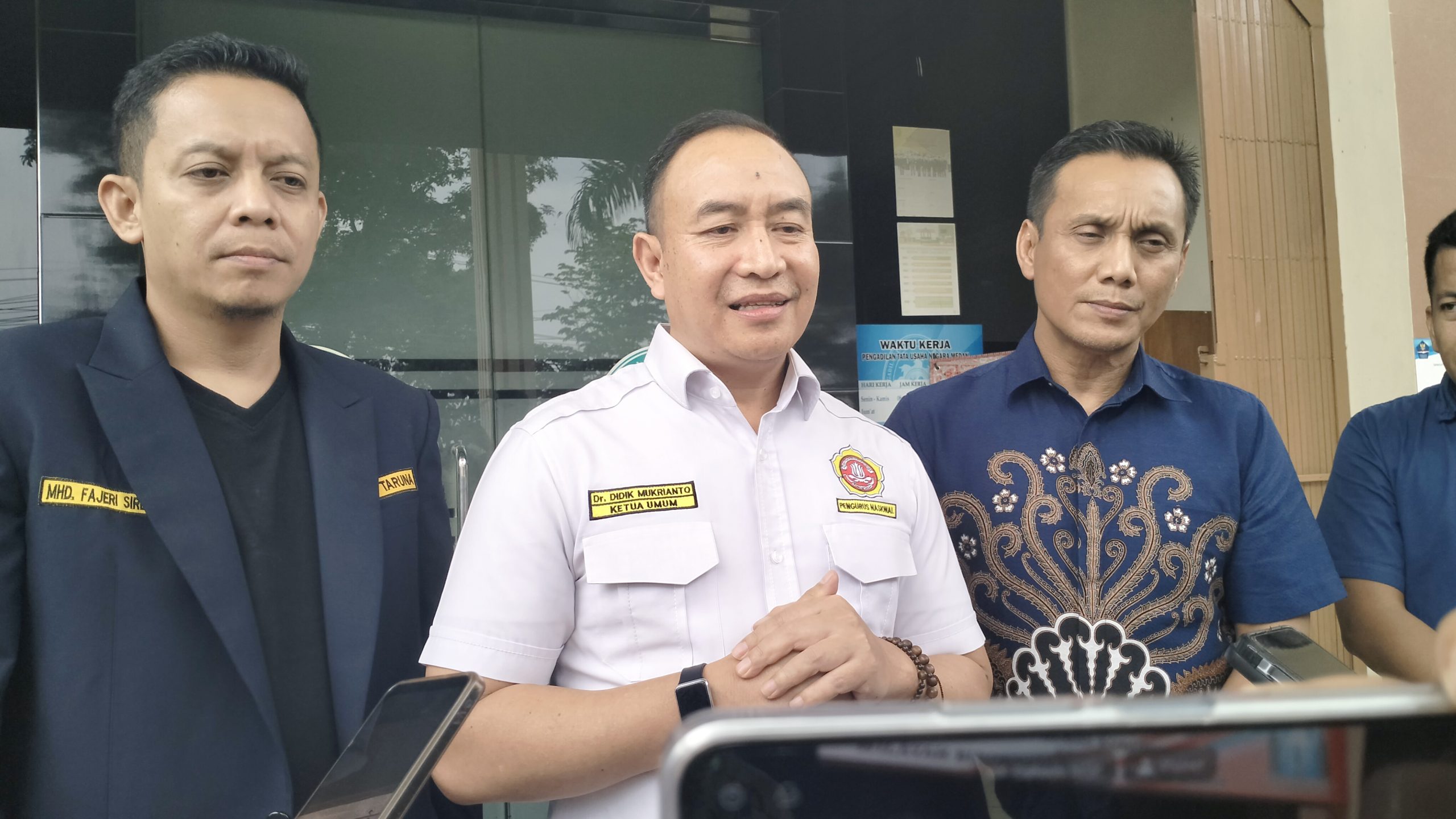 Ketua Umum Pengurus Nasional Karang Taruna, Didik Mukrianto (tengah) memberi keterangan kepada wartawan di PTUN Medan, Selasa (11/04/2023). (ben)