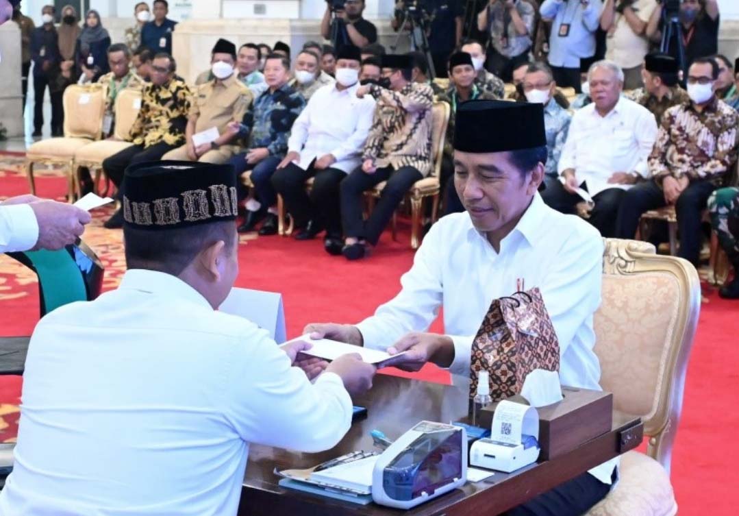 Presiden Jokowi menyerahkan zakat ke Baznas di Istana Negara, Selasa (28/03/2023). (istimewa)