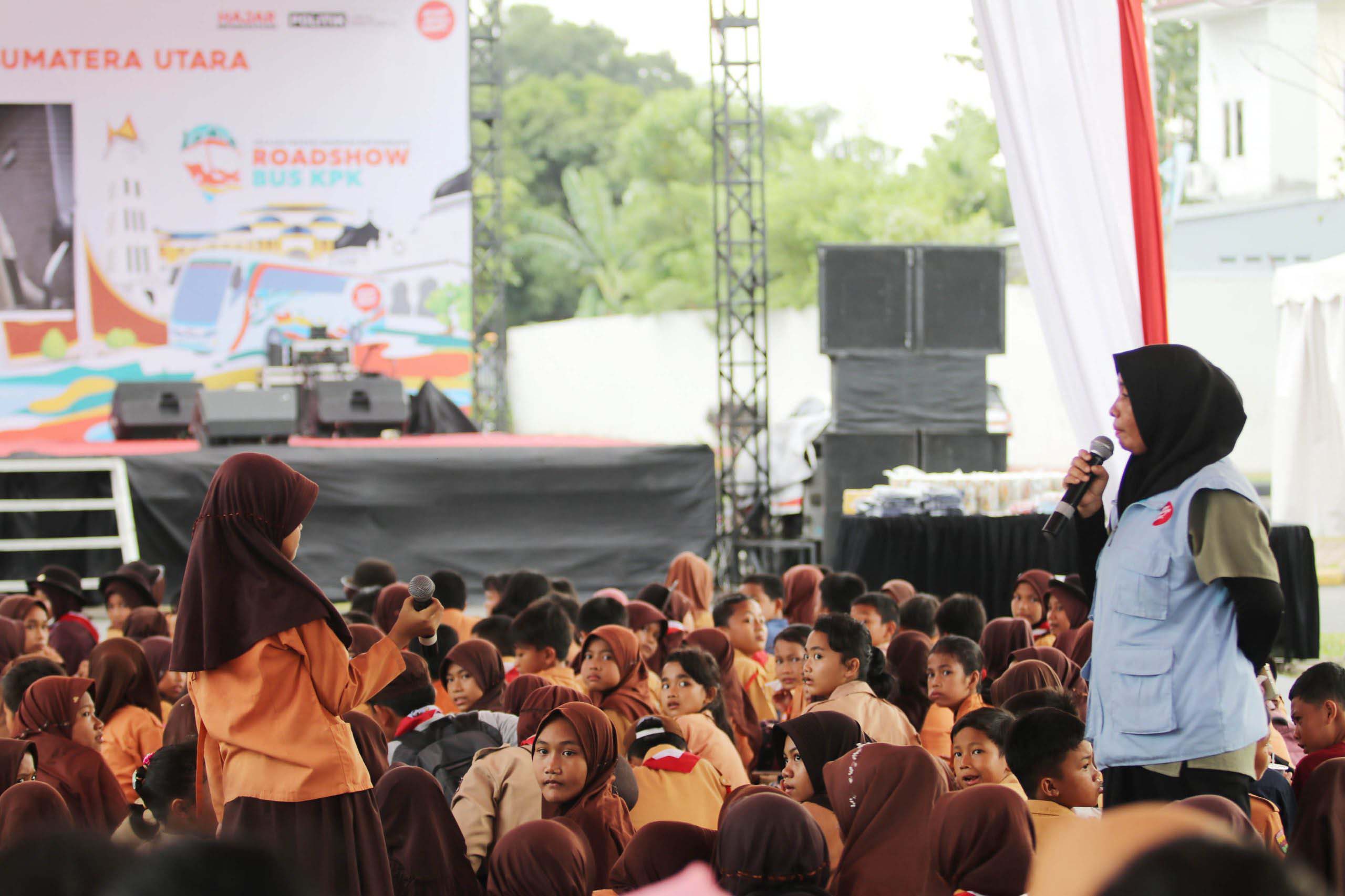Hari kedua Roadshow Bus KPK di Arena PRSU, Jalan Jenderal Gatot Subroto Medan, Jumat (27/10/2023), dihadiri pelajar. (istimewa)