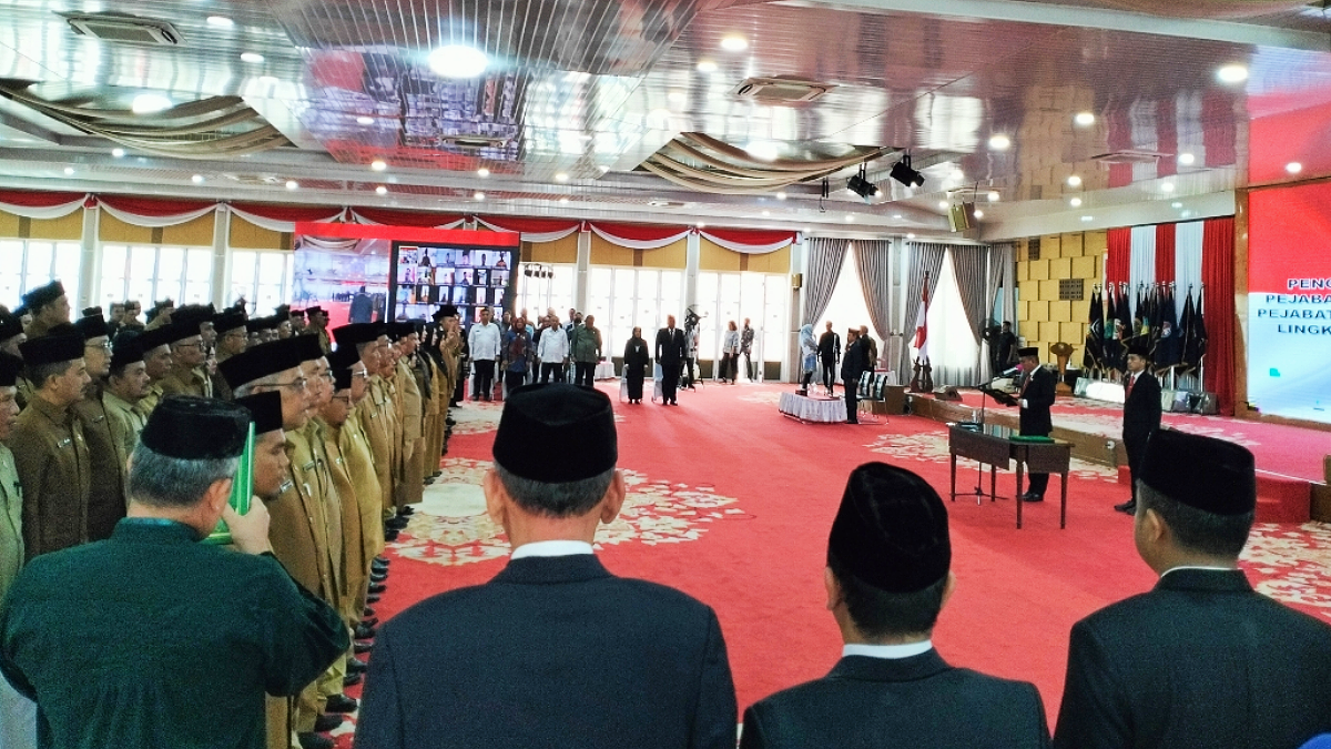 Kali ini, 96 pejabat Eselon III dan IV dilantik di Aula Tengku Rizal Nurdin, Rumah Dinas Gubernur, Jalan Jenderal Sudirman Medan, Jumat (01/09/2023).