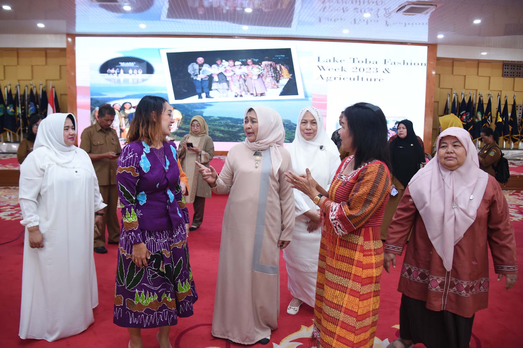 Turut hadir Sekda Kabupaten Humbahas, Tonny Sihombing, Kepala OPD di lingkungan Pemprov Sumut dan OPD se-Kawasan Danau Toba, Ketua Dekranasda se-Kawasan Danau Toba, Wakil Ketua Harian Dekrnasda Sumut Dian Arief S Trinugroho, dan Sekretaris Dekranasda Sumut Hasnah Lely Siregar.