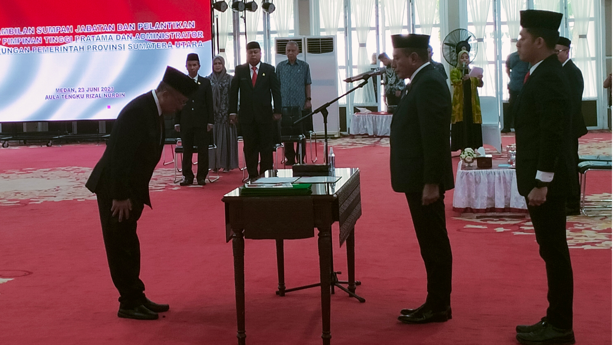 Pelantikan Marlindo Harahap menggantikan Bambang Pardede itu, berlangsung di Aula Tengku Rizal Nurdin, Rumah Dinas Gubernur Sumut, Jalan Jenderal Sudirman Medan, Jumat (23/06/2023).