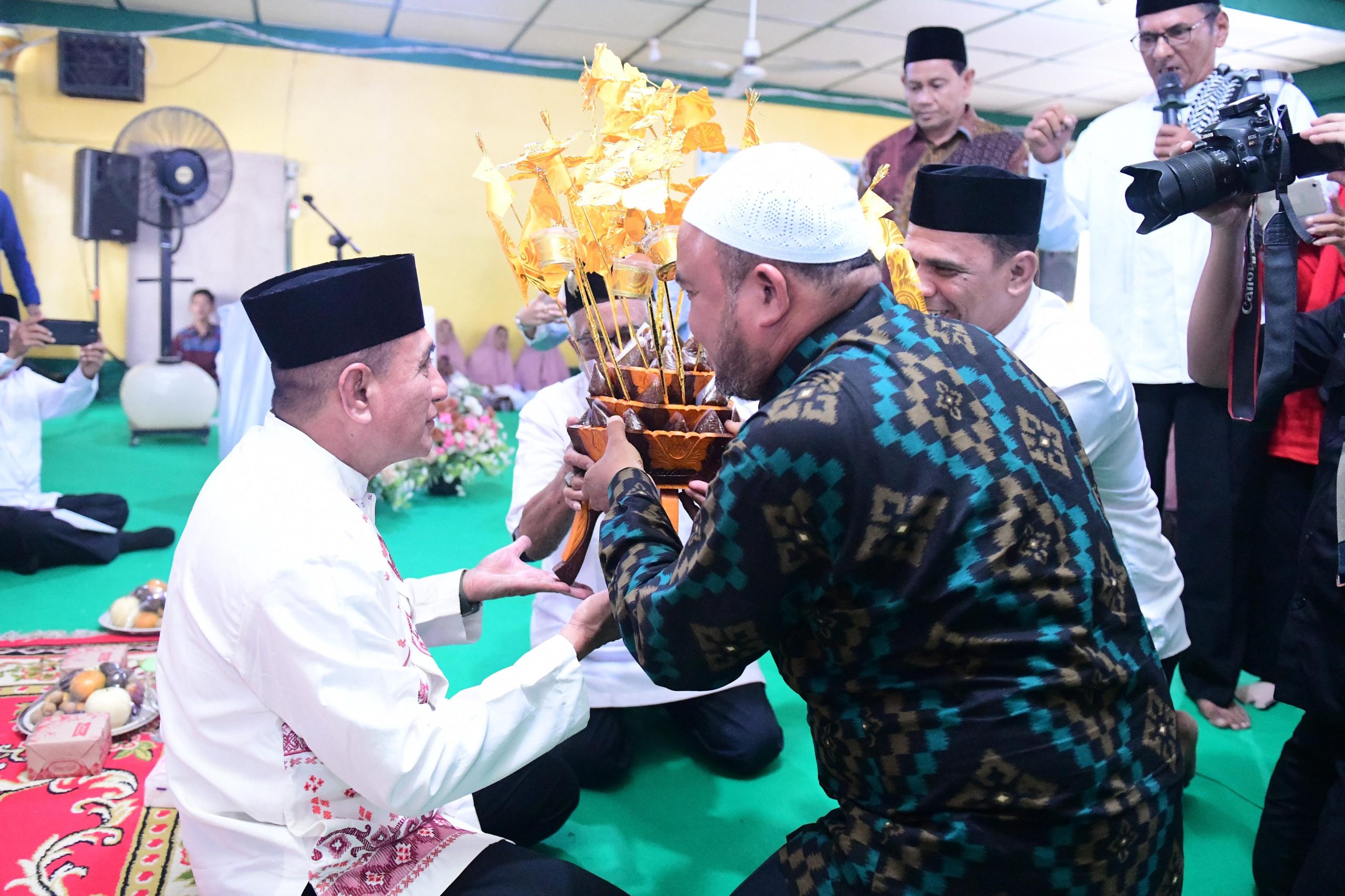Mereka tampak menyambut hangat kehadiran Edy Rahmayadi dengan iringan gendang rebana dan salawat pada acara Tabligh Akbar 1 Muharram 1446 itu.