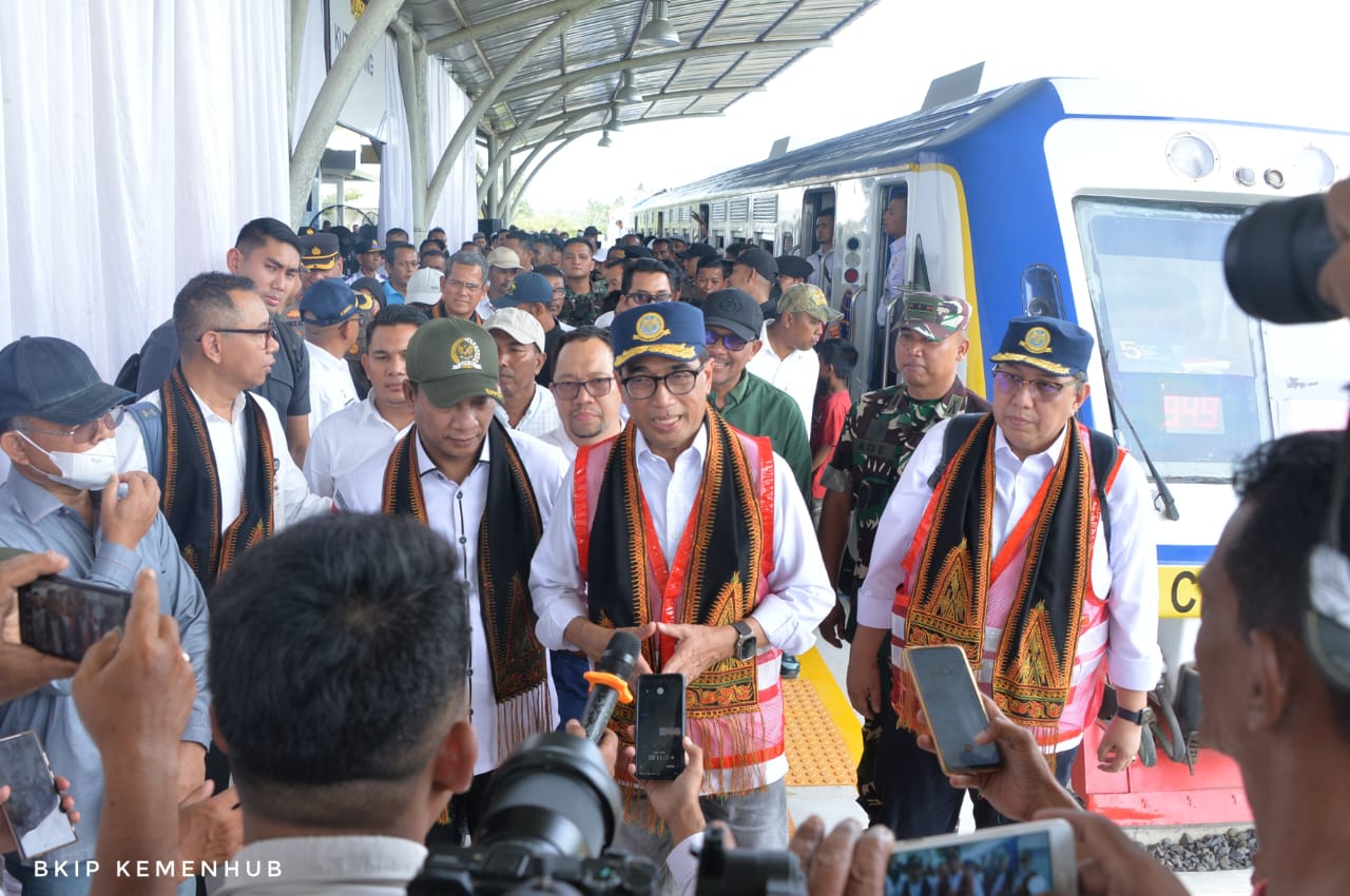 Menhub Budi Karya Sumadi mengatakan, pemerintah akan terus melanjutkan pembangunan angkutan massal kereta api di Provinsi Aceh, untuk memperlancar konektivitas penumpang maupun barang baik antar provinsi, kota, maupun kabupaten.