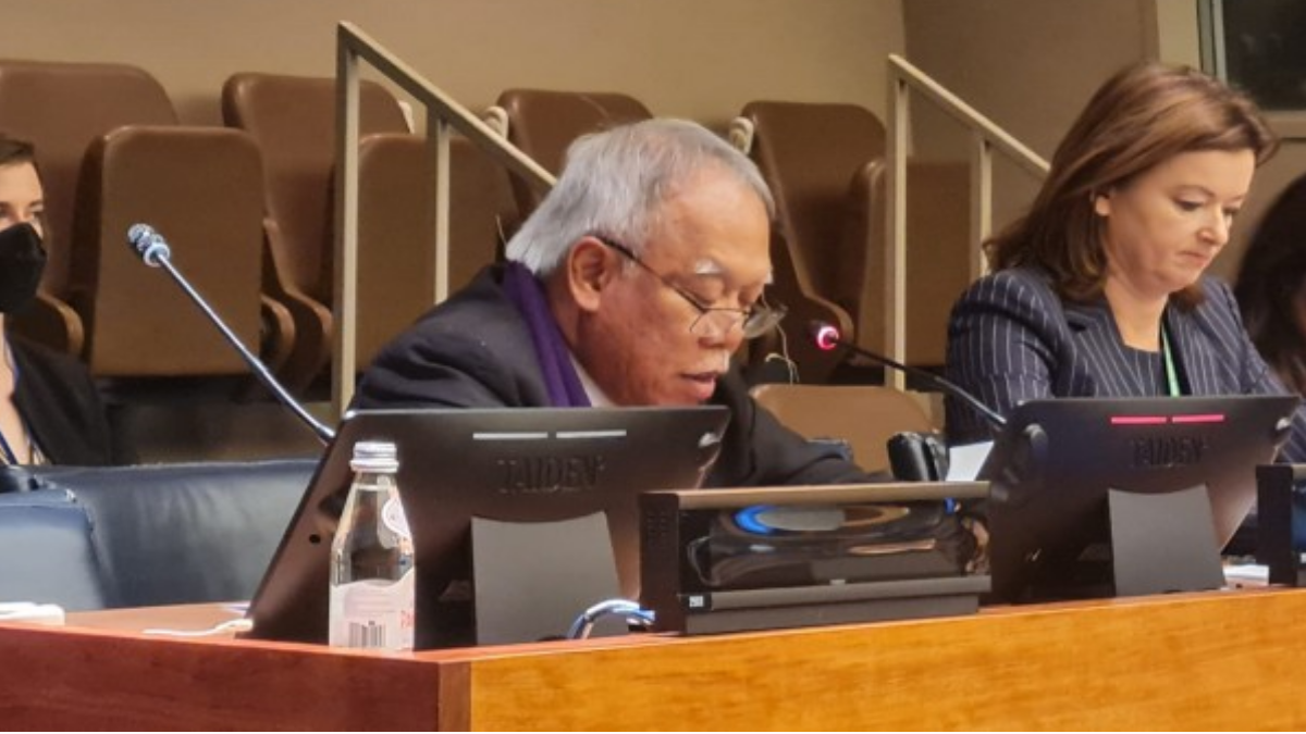 Menteri PUPR Basuki Hadimuljono berbicara pada Dialog Interaktif kelima sebagai rangkaian pertemuan UN 2023 Water Conference (Konferensi Air PBB 2023) di New York, Amerika Serikat, Jumat (24/03/2023). (dok kementerian pupr)