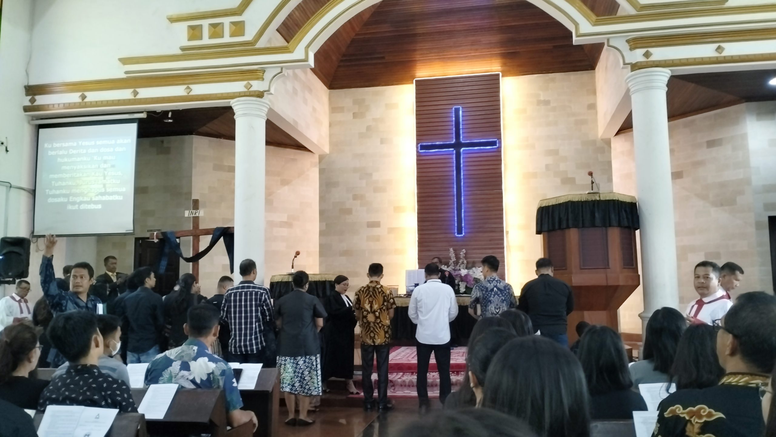 “Hendaknya pengorbanan Yesus tercermin dalam sikap kita, di keluarga kita, dan di tempat dimana kita bekerja,” ujar Pendeta Simanungkalit.