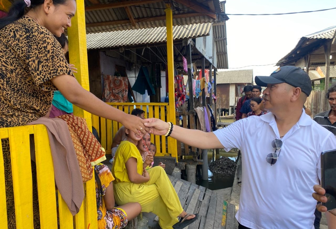 Balon Gubernur Sumut Nikson Nababan hadir menemui warga nelayan di Belawan, Selasa (11/6/2024). (istimewa)