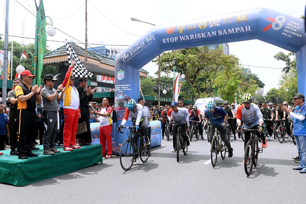 Panglima TNI Yudo Margono melepas 6 personil gerakan kampanye jaga dalam kegiatan ‘The Rising Tide’ di Lapangan Benteng Medan, Sabtu (09/09/2023). (istimewa)