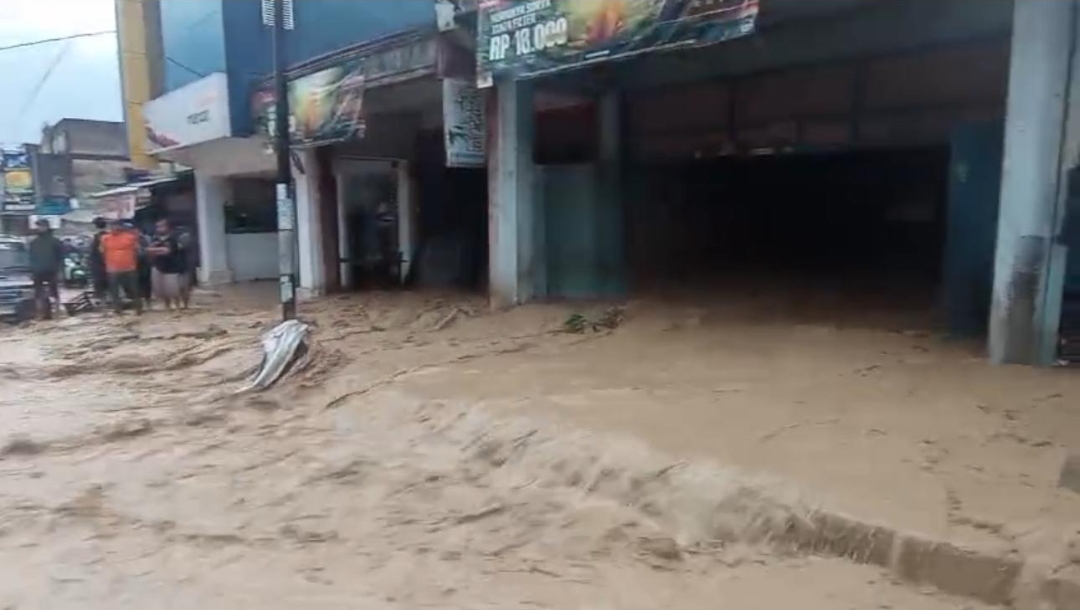 Bencana alam banjir melanda Parapat, Simalungun, Minggu (16/3/2025) sore. (screenshoot video)